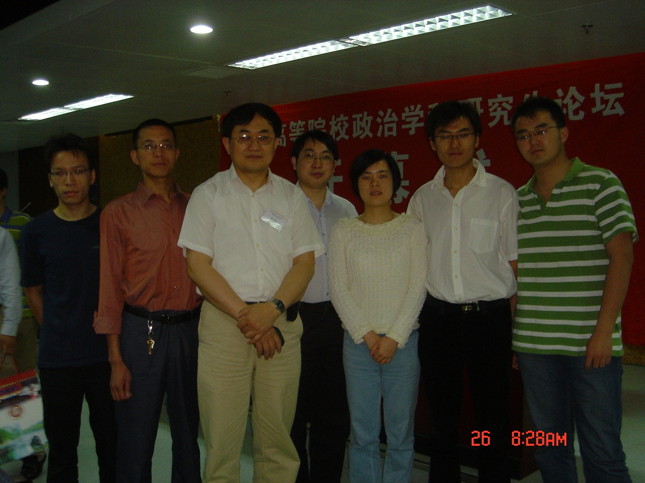 2007年5月26日,由史明涛、李江锋、周云亨、赵裴及朱姗姗等五名硕士生,和钮松等一名博士生组成的团队,在总支书记武心波老师的带领下,参加了由北京大学政府管理学院和国际关系学院共同举办的第六届全国高等院校政治科学研究生学术研讨会。会上,同学们不仅宣读了各自论文,接受提问,积极应答,展开讨论,显示了我院学生良好的学术风貌和学术造诣,而且我院团队还获得了组委会颁发的最佳组织奖。
