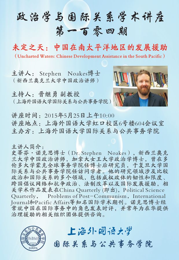 主讲人: Stephen Noakes博士(新西兰奥克兰大学中国政治讲师)