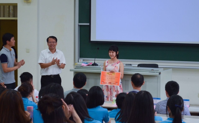 本次开学典礼上还举行了别致的学院首届“院长特别奖”颁奖仪式。经学院党政联席会议决定,为激发本科生教育创新发展的生机,推进学风建设和人才培养质量,学院今年决定设立“院长特别奖”,旨在激励本科生勤奋学习、创新进取,不断扩大学院在社会的影响力。郭树勇院长亲自给希望之星英语风采大赛全国一等奖获得者、2015级国际公务员班陈丝雨同学颁奖,并鼓励同学们向陈丝雨同学学习,培养兴趣,勇于尝试,成为创新型拔尖人才。