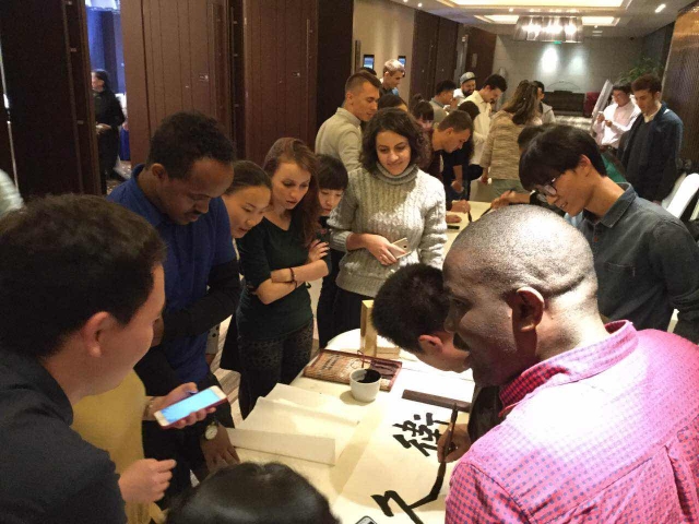 我院留学生对能参与此次大会都表示十分开心,在此期间获益良多。这次活动不仅丰富了他们对互联网的认识,开拓了他们的眼界,同时还给了他们一次体验中国传统文化的良机。在11月17日下午的“双创双引”峰会后,留学生受邀在晚餐期间观看了富有江南特色的民间舞蹈、以及古筝演奏、川剧变脸等节目,并在之后参与了包粽子和写书法等互动活动,充分感受了中国传统文化的博大精深。
