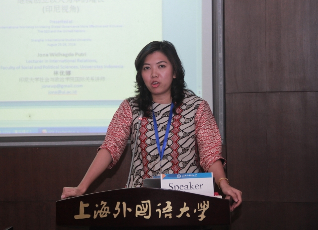 2016年8月25-26日,“使全球治理更加有效和包容:二十国集团与联合国”国际学术研讨会在上海外国语大学隆重召开。此次研讨会由上外国际关系与公共事务学院、上外G20研究中心和加拿大多伦多大学G20研究中心联合承办,澳大利亚洛伊国际政策研究所和上海联合国研究会协办。中共中央对外联络部研究室副主任栾建章、上海市委宣传部副部长燕爽、上海市政协常委、对外友好委员会主任周海洋,上海外国语大学党委书记姜锋、校长曹德明、副校长冯庆华、周承等领导出席此次会议并讲话。来自中国、美国、加拿大、澳大利亚、印尼、比利时等国的30多位专家学者热烈参与学术会议讨论。