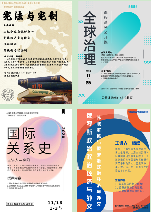 为推进全体党员学习“四史”,引领广大同学传承红色精神,我院学生党支部开展了以“中国共产党历史视角下‘爱国’和‘爱党’的统一”为主题的党课教育活动,以“讲一个党史小故事”为主题党日活动,观看“初心如磐,使命在肩”专题直播,将“四史”学习贯穿于积极分子党校培训过程中。并特邀上海市“四史”宣讲团成员郭树勇教授和校本科教学督导组组长王祥兴教授开展专题讲座,分别从“新中国外交七十周年”和“上外松江校区建立与发展历史”两个角度带领国关学子学习“四史”,引导国关学子坚定理想信念,厚植爱国情怀。