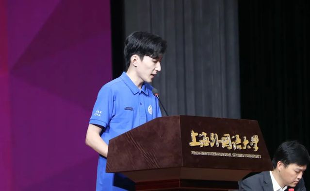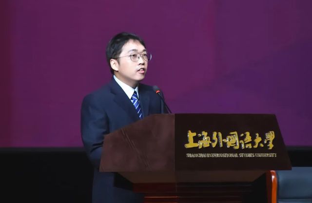 2021级外交学专业硕士研究生王鹏作为研究生代表发言。王鹏表示在百年未有之大变局下,作为一名学生党员、作为一名具有国际视野的新上外人更应该多学多看,用语言优势践行当代青年外交,“在学思践悟中坚定理想信念,在奋发有为中践行初心使命”。