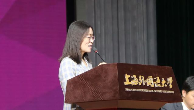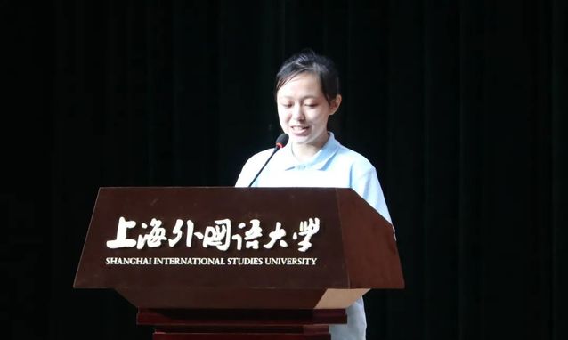 2018级政治学与行政学专业本科生朱雪铭作为老生代表发言。她分享了自己与上外国关并行的美好时光。从十年前与上外结下不解之缘,到今天“明德致公、卓越为国”已成为她血液里流淌着的信念,上外国关见证了她的蜕变。她呼吁每一位来到国关的同学们都树立更高的人生追求和奋斗目标,时刻牢记自己与国家同命运、共呼吸。作为政治学专业的学生,也需要学会以独特的视角,科学且客观地看待世界上发生的每一件事,大到全球治理、国际关系,小到居民自治、民生万事,都要去研究、去发掘、去探索,学会溯源、学会分析。