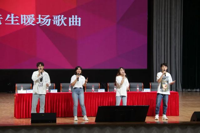 典礼在欢快的歌声中拉开了帷幕,由杨祺、赵海、谢嘉莹和杨卓熙四位老生同学将最衷心的开学祝福送给在座的每一位新生,希望他们能够拥有快乐而难忘的大学时光。