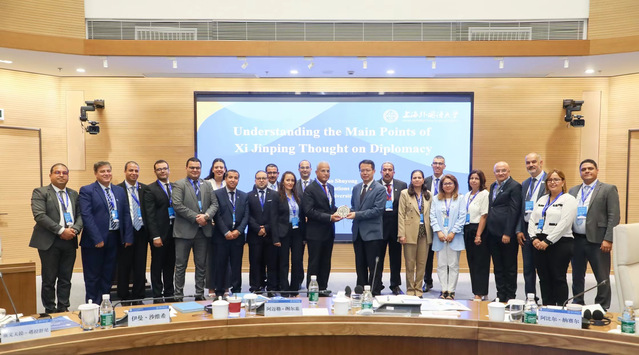 6月23日,中阿改革发展研究中心首期突尼斯官员研修班在上海外国语大学松江校区举办。来自突尼斯外交部、总理府、通讯技术部、文化部等部委的21位官员来华参加此次研修。中心秘书处积极贯彻学校“三进”要求,在课程安排等环节突出了对习近平外交思想、习近平经济思想及相关重要论述的解读。上海市智库习近平外交思想研究院首席专家、上海外国语大学国际关系与公共事务学院院长郭树勇教授应邀为研修班做了题为“准确理解习近平外交思想”的英文授课。