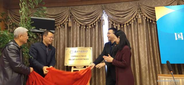 郭树勇院长、胡礼忠会长、黄震宇秘书长和学院党总支书记房叶臣共同为校友会国关学院分会揭牌,这也标志着国关学院分会的正式成立。